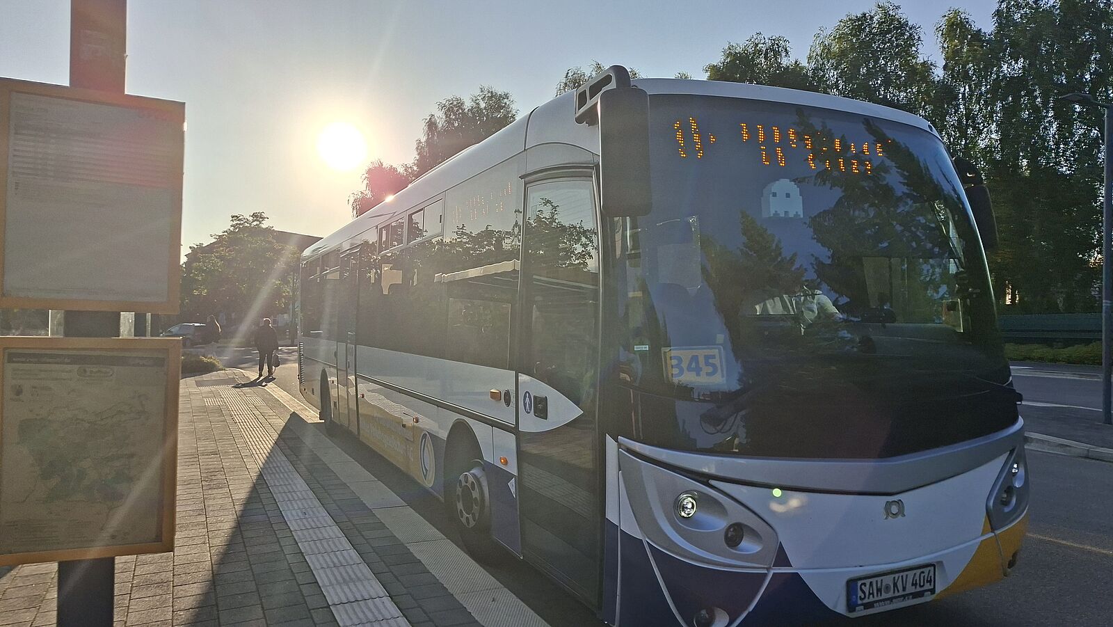 Der Plus-Bus nach Salzwedel dann am Hauptbahnhof ein, wobei mir mein Handy sagte, ich würde ihn nicht erreichen. Der Grund dafür ist ein Datenfehler, der den Bus aus Braunschweig mit 56 Minuten Verspätung angibt, was selbst die großzügige Umsteigezeit sprengen würde. Nachdem nur zwei Leute eingestiegen waren, kam noch eine größere Gruppe angerannt, die allerdings alle nur eine Station bis zur Autostadt mitgefahren ist. Wahrscheinlich waren dies die VW-Mitarbeiter aus dem verspäteten Braunschweiger RE. Im tatsächlich relativ häufig fahrenden +Bus ging es dann über Wald und Wiese und auch über die ehemalige Staatsgrenze, die heute nur noch durch das Hinweisschild sichtbar ist. Während diese Buslinie unumstritten ein Erfolgsprojekt ist, machen die meisten anderen Bus- und Rufbuslinien einen Halt vor der Grenze, was dem allgemeinen Fahrgast im ÖPNV das Gefühl vermittelt, die Grenze sei noch nicht weg. Dabei wäre es vor allem im Rufbusbereich nicht kostspielig, die Linien um wenige Haltestellen im anderen Bundesland zu ergänzen, allerdings sind die Finanzierungstrukturen im Nahverkehr zu kompliziert für so einfache Lösungen.